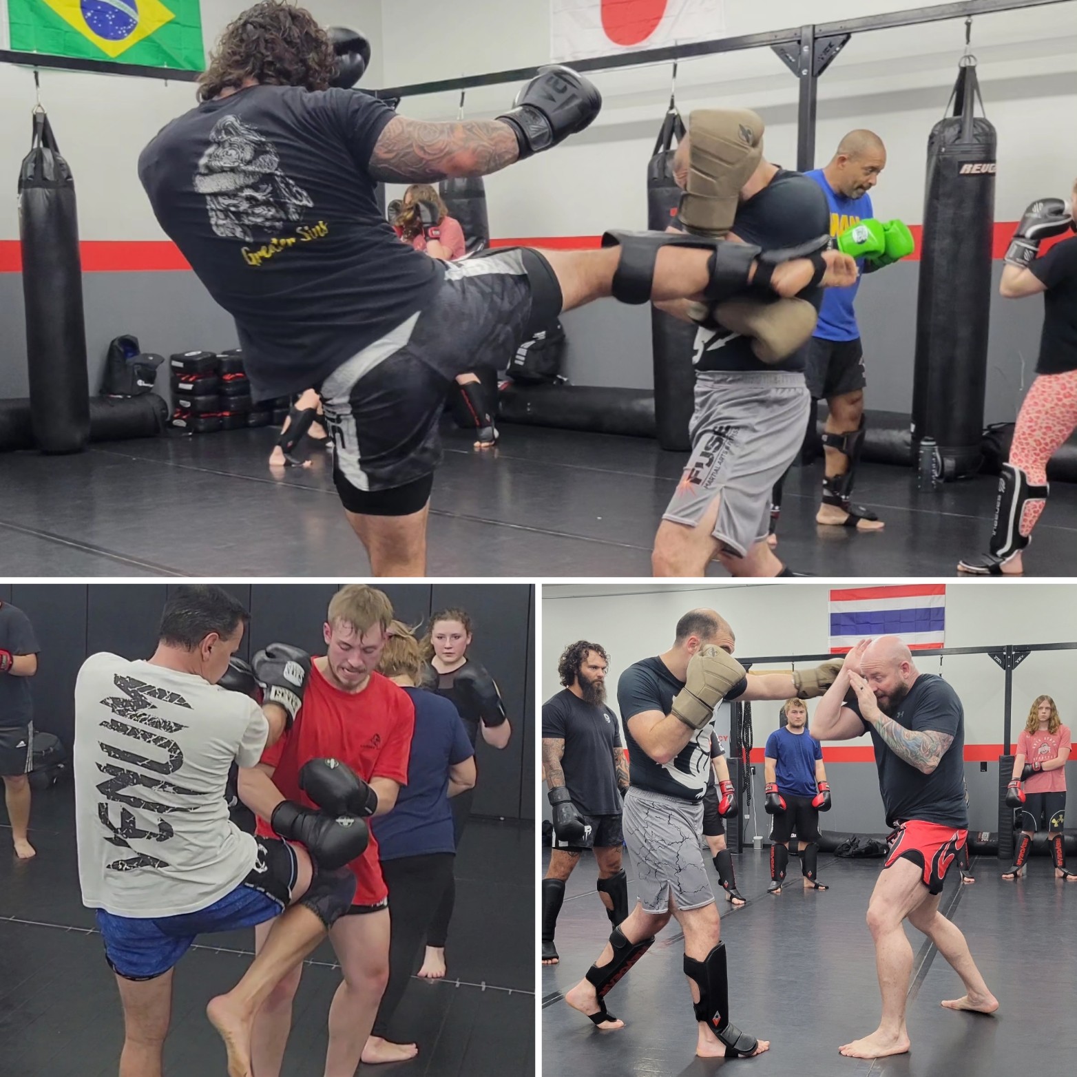 Muay Thai, also referred to as "Thai boxing", is a martial art and combat sport that uses stand-up striking along with various clinching techniques. Muay Thai is known as the "art of eight limbs" due to the application of kicks, punches, knees and elbows. We train the fundamentals of one of the most effective stand-up styles out there. We focus on footwork drills, piecing together effective punch and kick combinations, and allow our students to execute the techniques with each other through Dutch drills and sparring! Beginners always welcome!