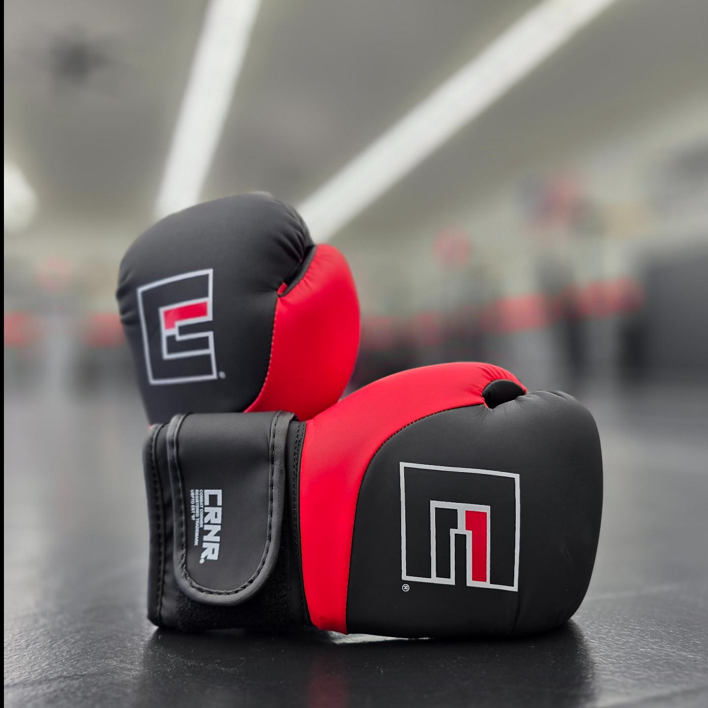 Combat Corner brand 8oz youth boxing gloves, durable material, velcro wrist strap for support and stability.